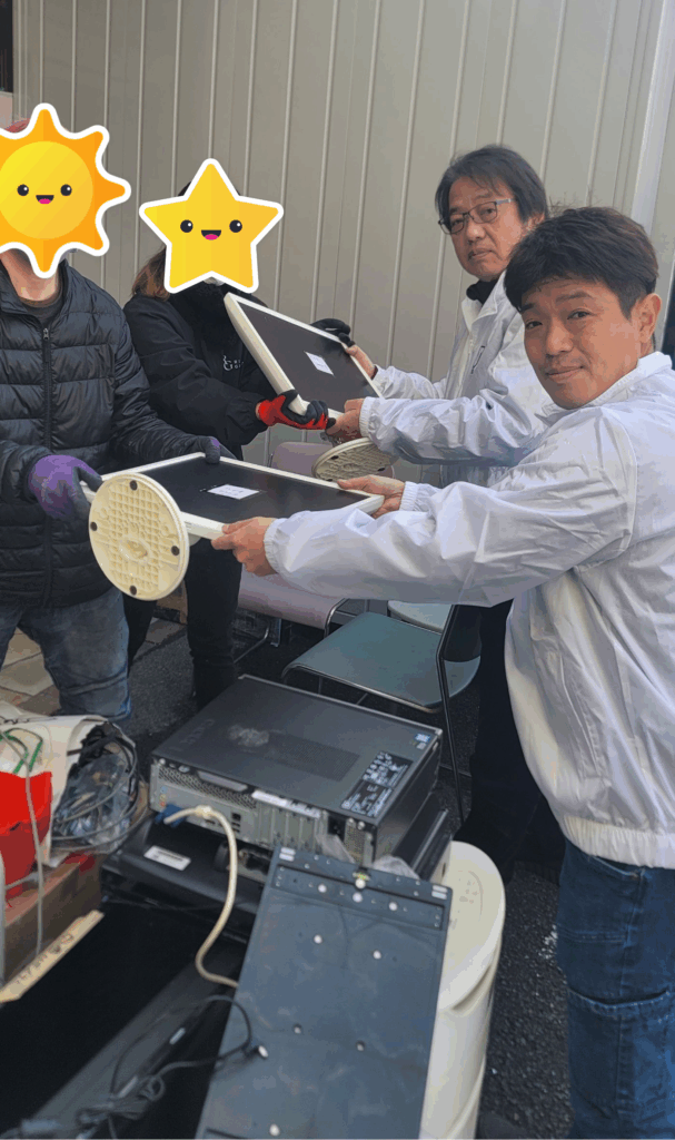 前回同様、社内だけでなく各現場でご協力頂いた廃棄用のパソコンやモニター、オーディオプレイヤーなどを