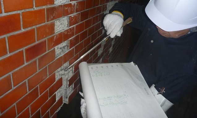 タイルの補修箇所(貼替箇所)を記載した図面を現場で照合し、差異が無いかの監理者確認をして頂きました。 大阪府大阪市